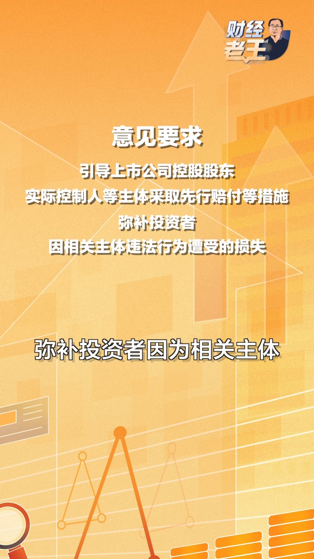 二是强化重大违法强制退市中的投资者保护★★。引导存在重大违法强制退市风险的上市公司控股股东★★、实际控制人等★★,主动采取先行赔付或者其他保护投资者合法权益的措施★★,弥补投资者因上市公司及相关主体违法行为遭受的损失★★。
